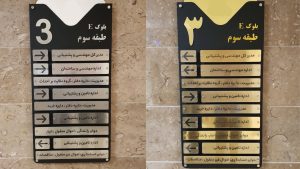 • متریال: برای بیرون از ساختمان از جنسهای مقاوم به UV و رطوبت استفاده کنید،برای دید شب از شبتاب یا رفلکتیو بهره ببرید.